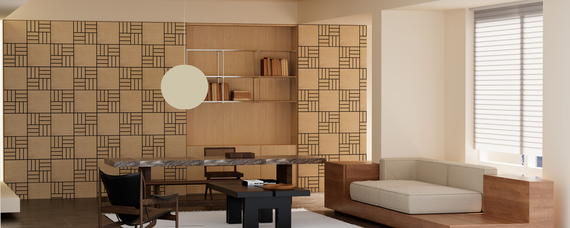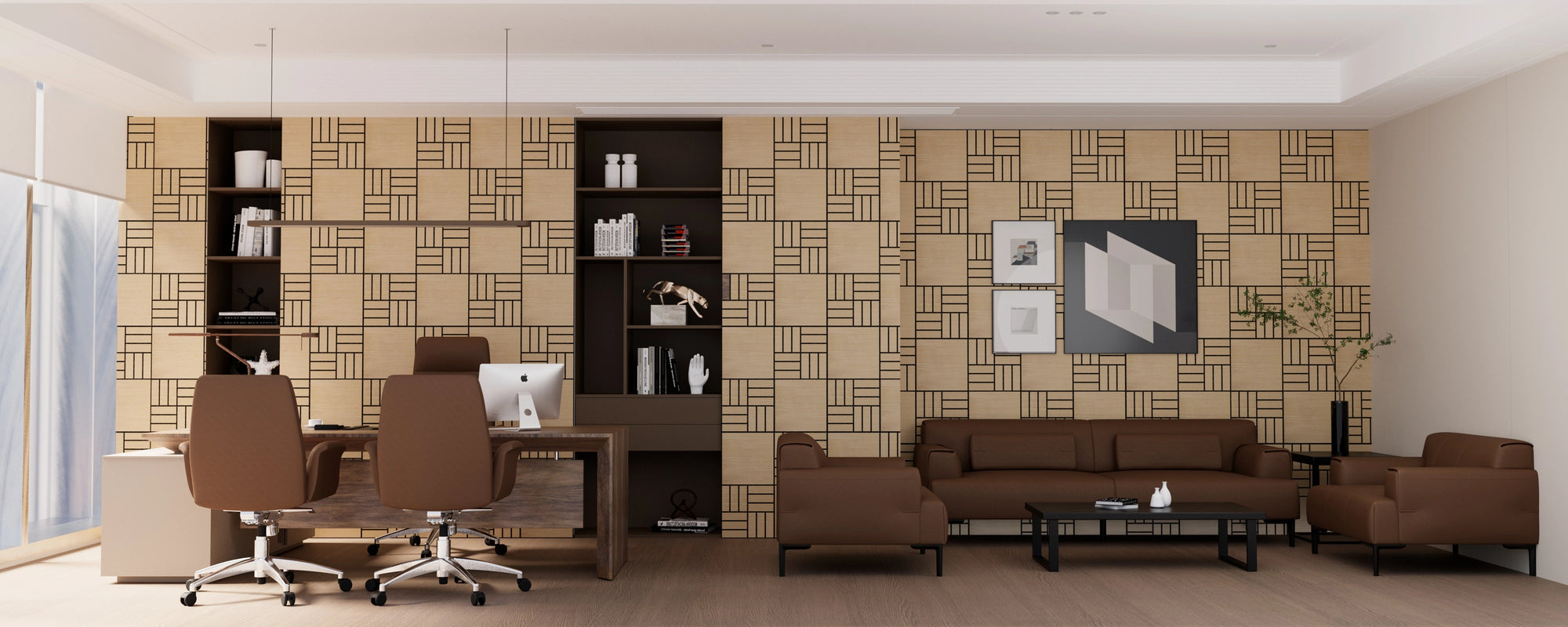 Lightweight Flexible Walnut Veneer Acoustic Basketweave Grid Wall Panels Unisoar