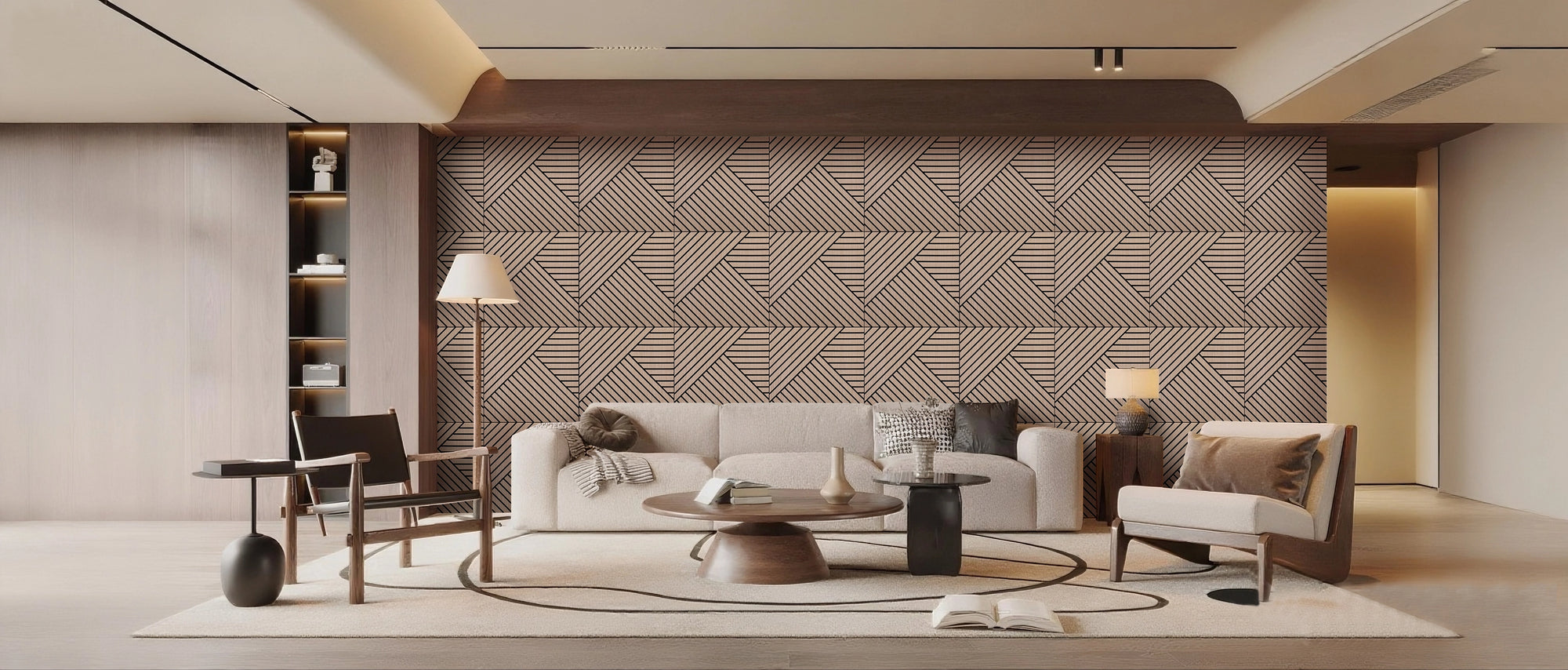 Lightweight Flexible Walnut Veneer Acoustic Diagonal Chevron Wall Panels Unisoar