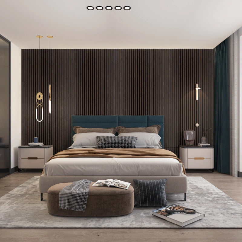 Unisoar’s minimalist slat panels come in oak, walnut, and smoked finishes—choose the tone that best complements your home, office, or studio.