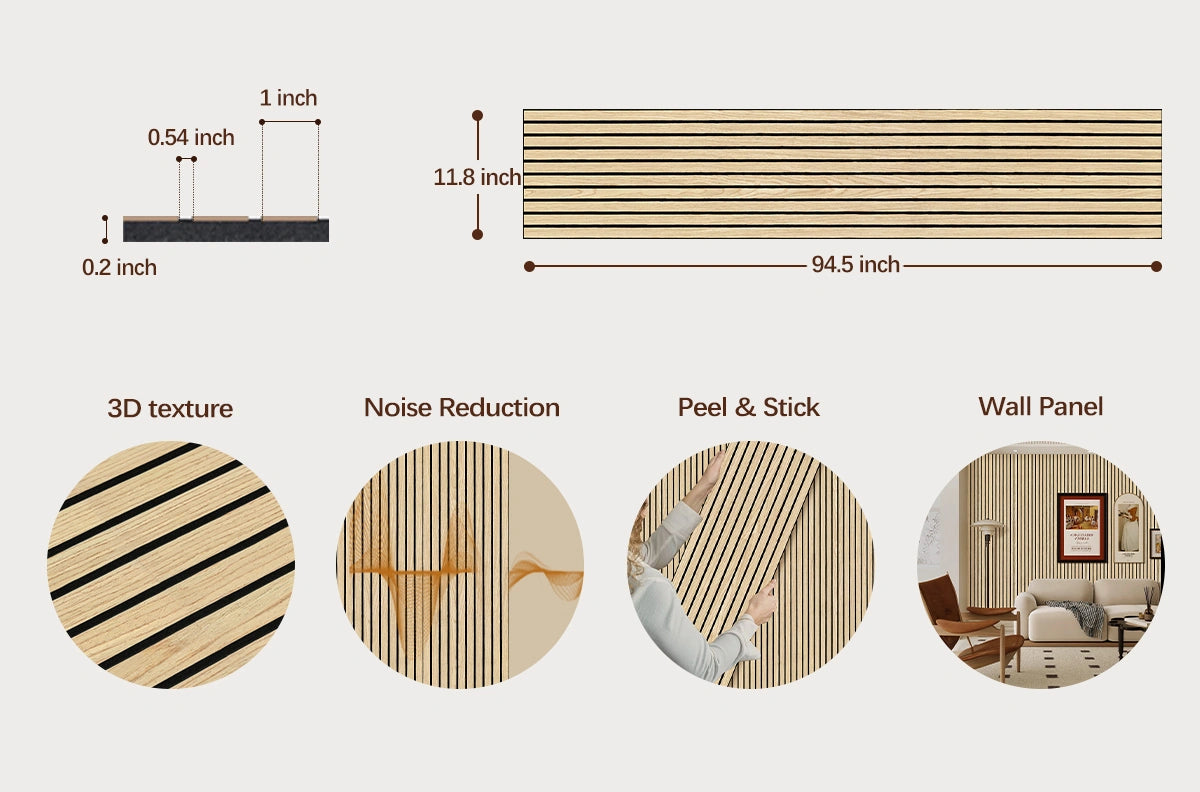 | Design & Style | 3D Embossed Slat, Natural Wood Grain |